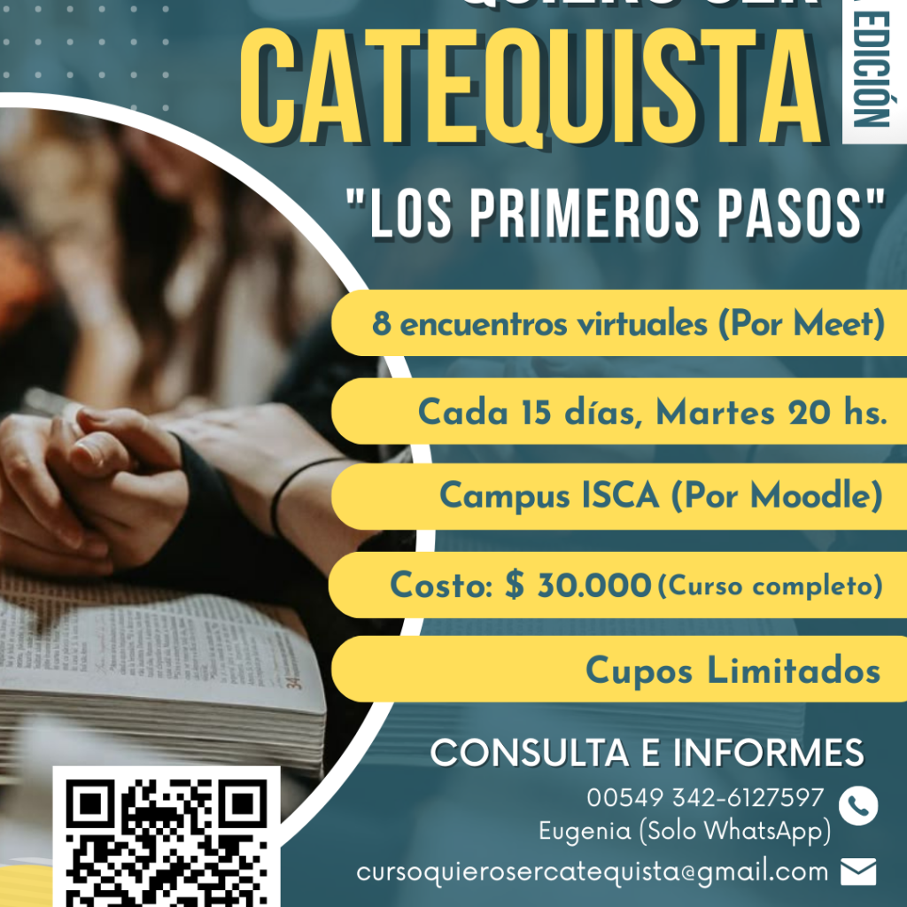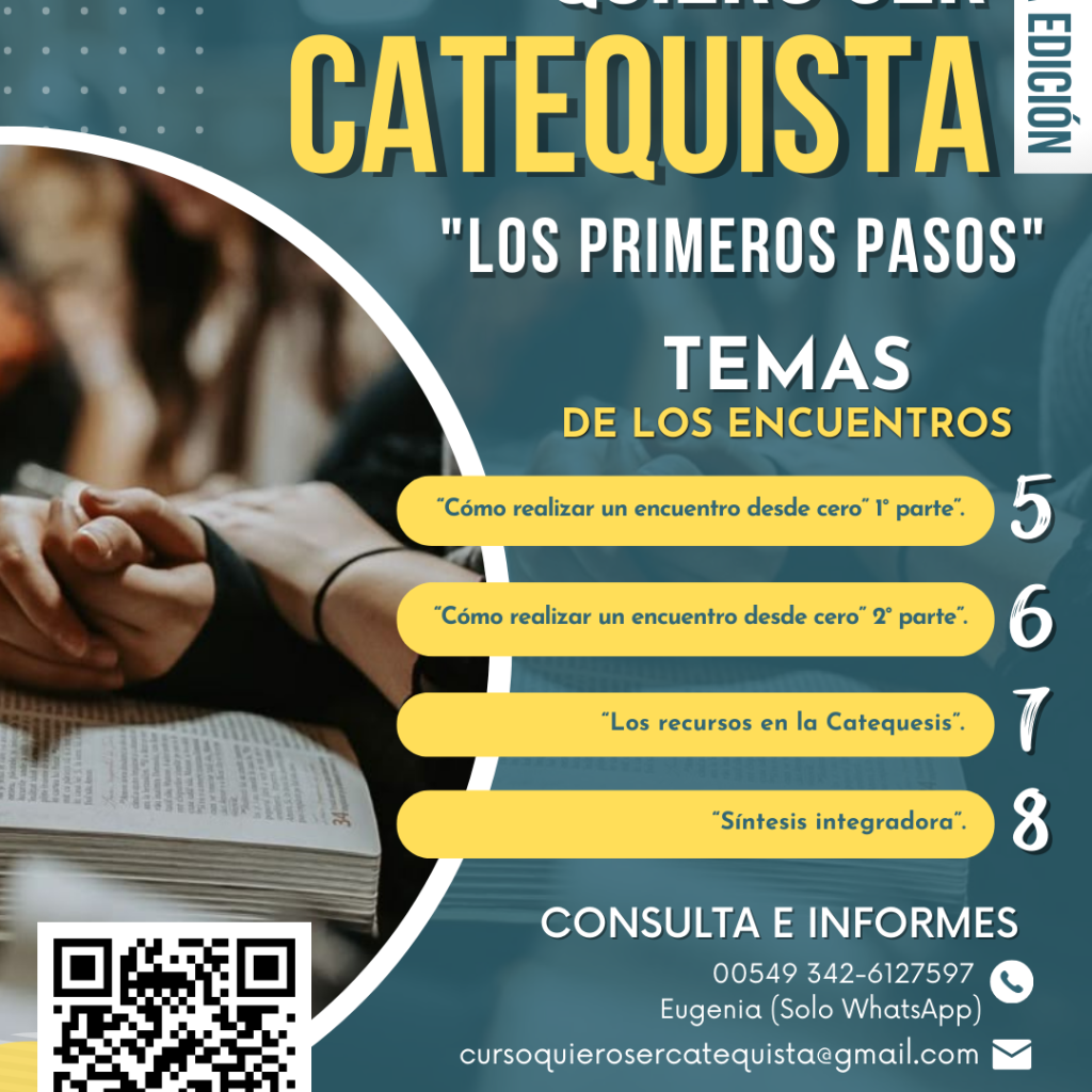 Se trata de un curso de formación básica para todos aquellos que quieran dedicarse a la tarea o ya lo estén haciendo en alguna comunidad.Se propone generar un espacio formativo sencillo para catequistas que recién se inician en su servicio evangelizador, bajo el formato “aula taller”, el cual favorece las cuatro dimensiones formativas del catequista: ser, saber, saber hacer, saber hacer con.