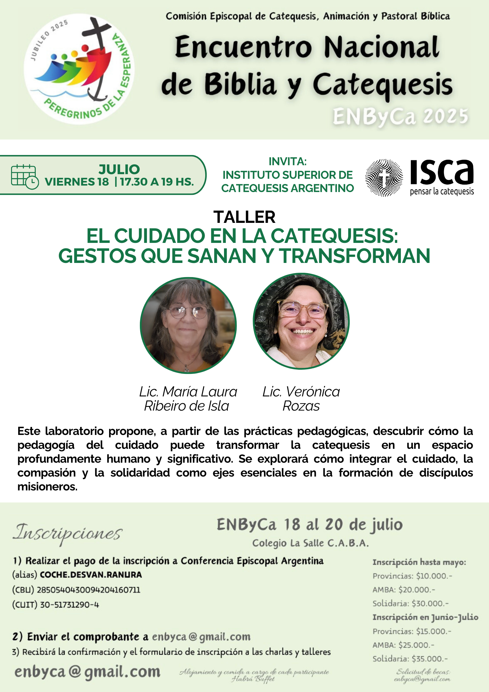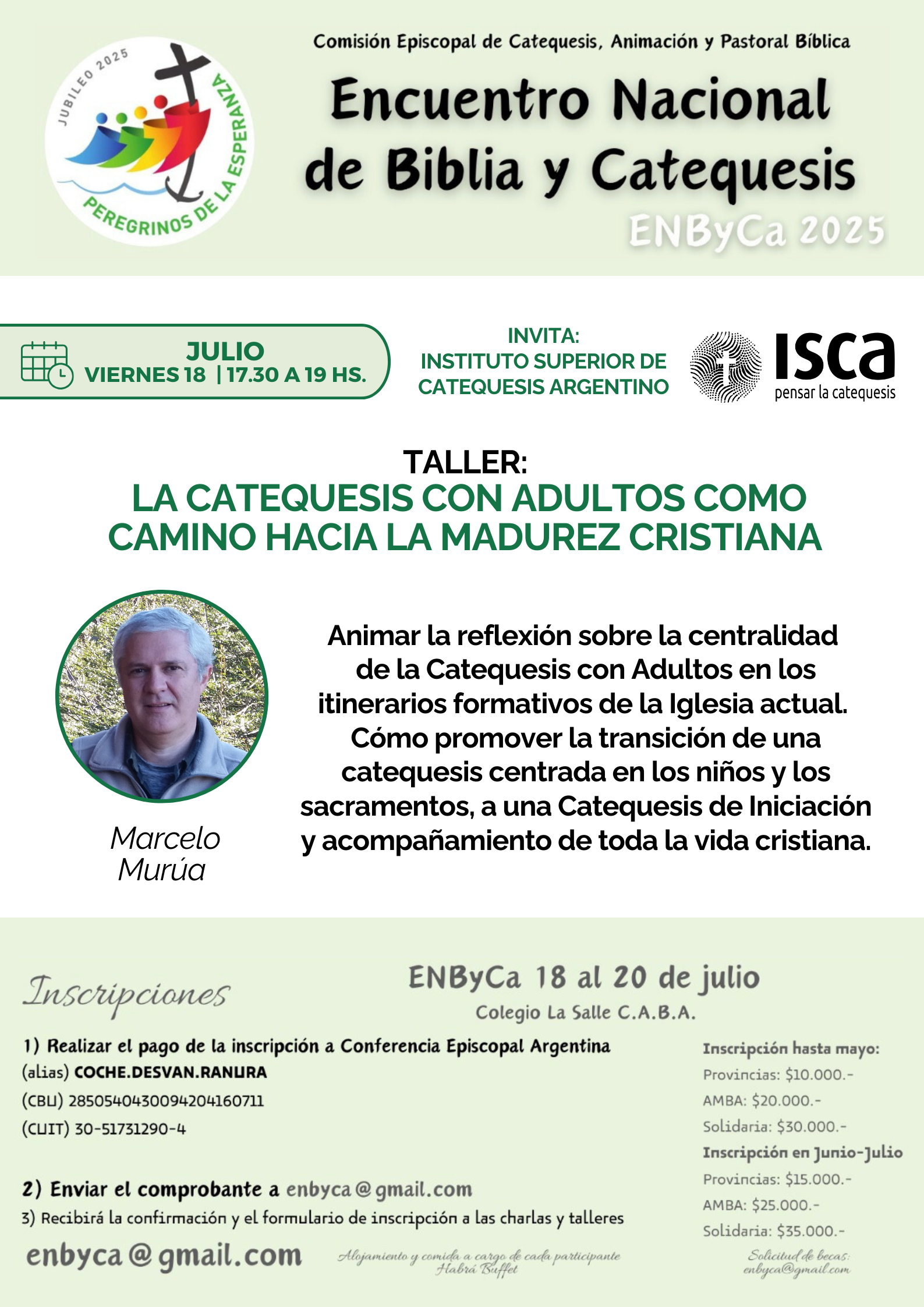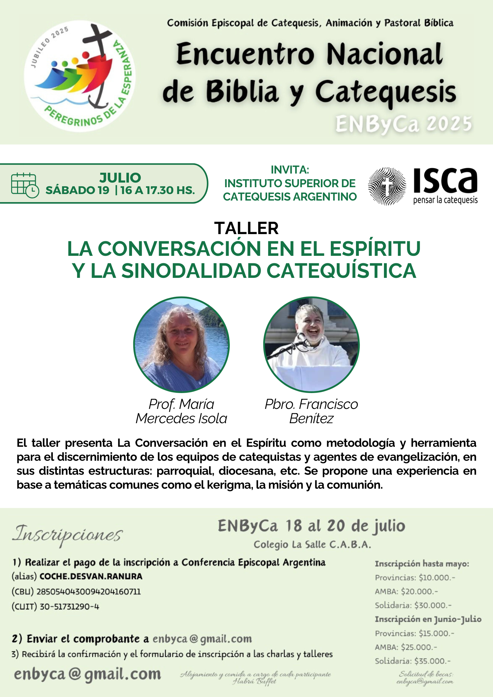 La Comisión Episcopal de Catequesis, Animación y Pastoral Bíblica invitan con motivo del Jubileo 2025 al Encuentro Nacional de Biblia y Catequesis #ENByCa2025, Del 18 al 20 de Julio en el Colegio La Salle, Riobamba 650 C.A.B.A
