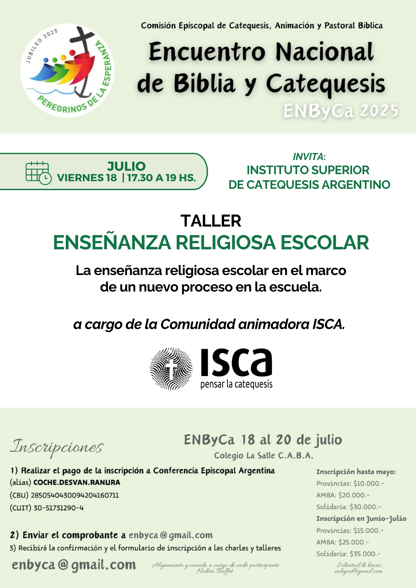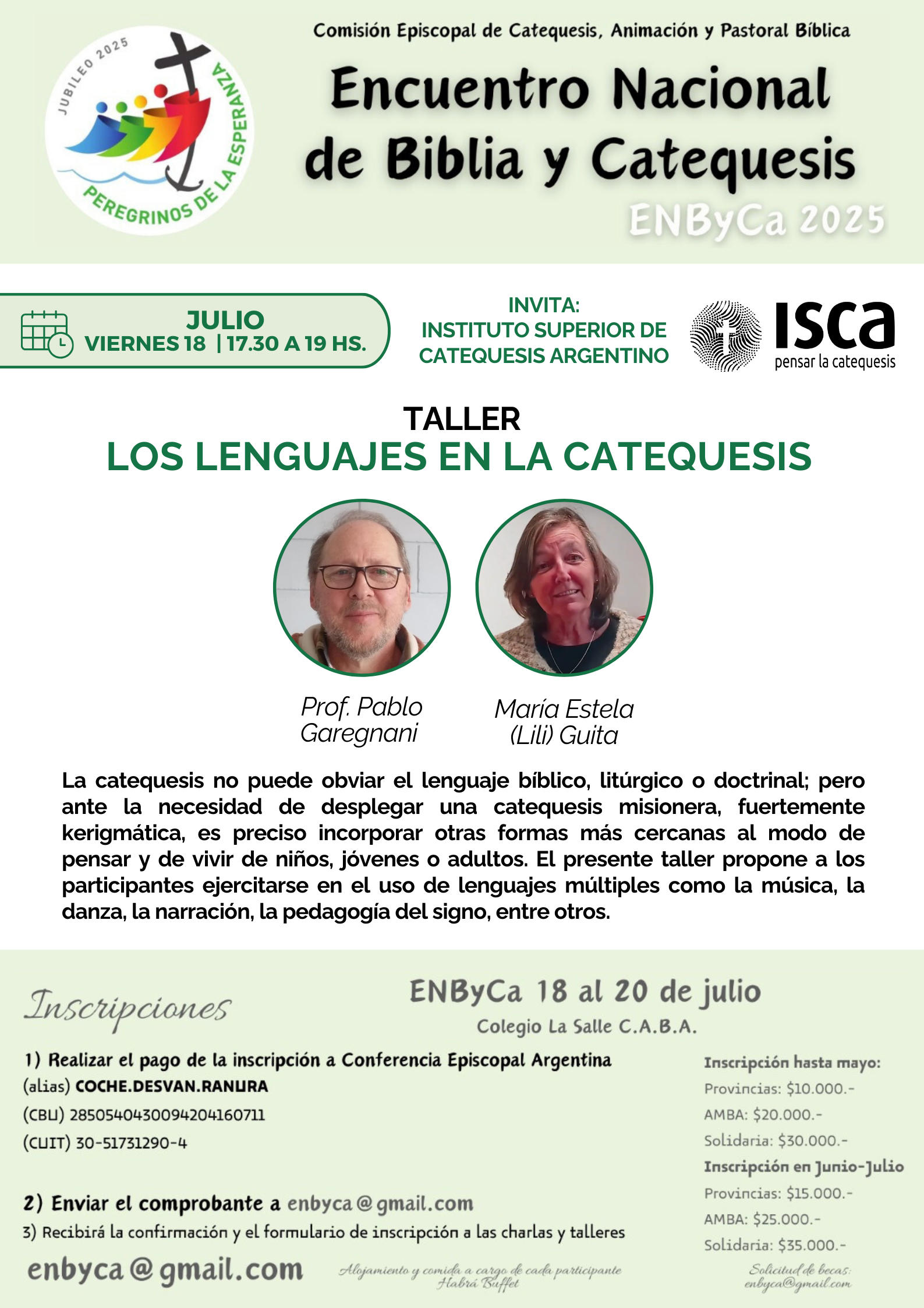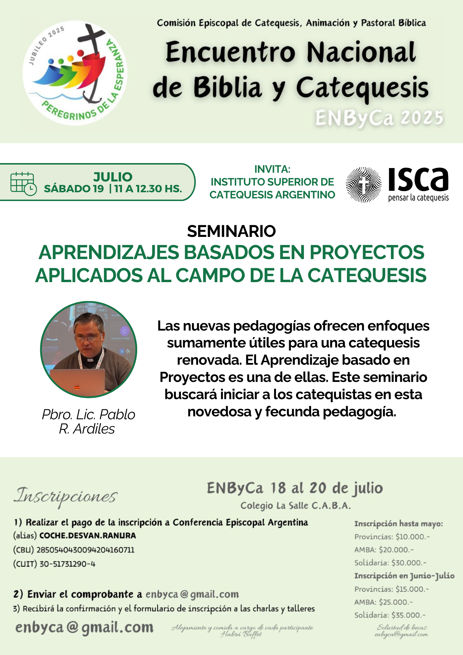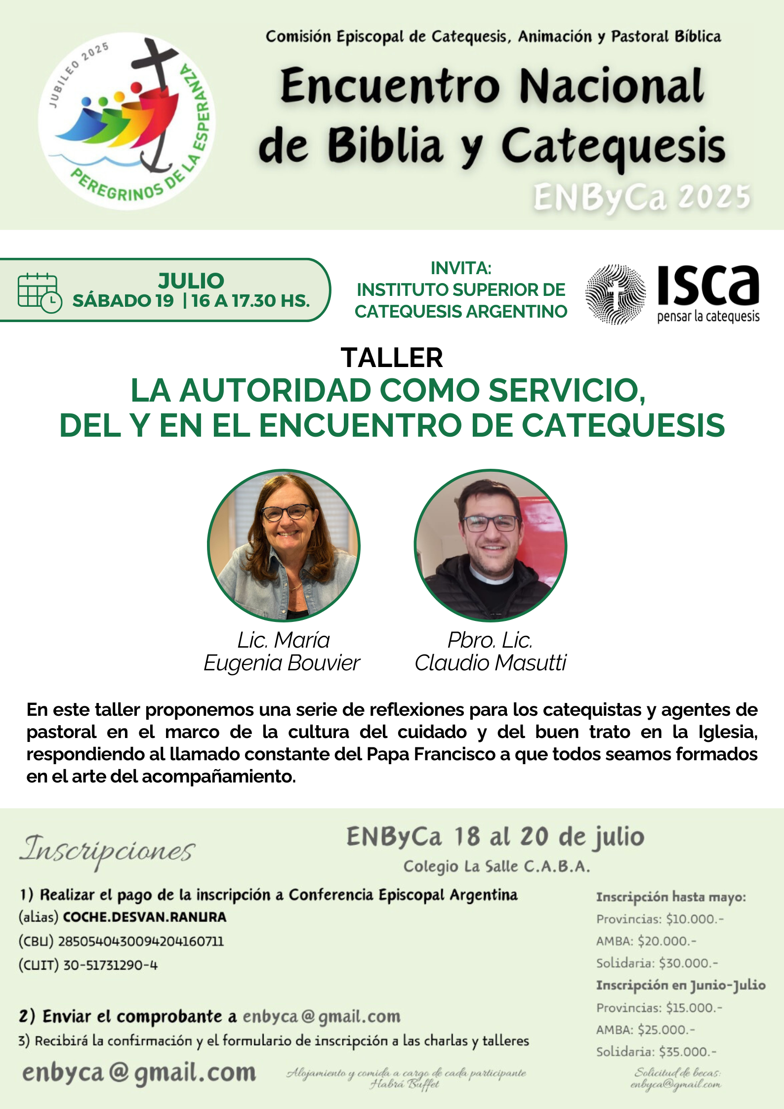 La Comisión Episcopal de Catequesis, Animación y Pastoral Bíblica invitan con motivo del Jubileo 2025 al Encuentro Nacional de Biblia y Catequesis #ENByCa2025, Del 18 al 20 de Julio en el Colegio La Salle, Riobamba 650 C.A.B.A
