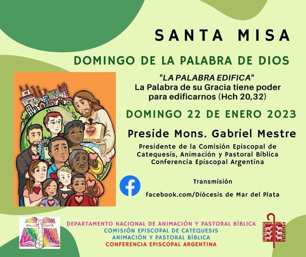 Mons. Gabriel A. Mestre, obispo de la diócesis de Mar del Plata y Presidente de la Comisión Episcopal de Catequesis, Animación y Pastoral Bíblica presidirá la Misa del Domingo de la Palabra de Dios desde la Iglesia Catedral de Mar del Plata Basílica de los Santos Pedro y Cecilia.