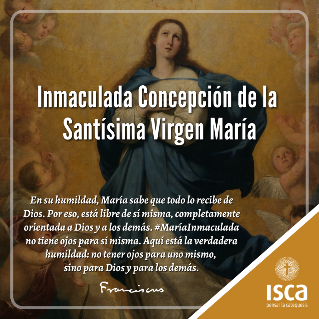 “En su humildad, María sabe que todo lo recibe de Dios. Por eso, está libre de sí misma, completamente orientada a Dios y a los demás. #MaríaInmaculada no tiene ojos para sí misma. Aquí está la verdadera humildad: no tener ojos para uno mismo, sino para Dios y para los demás”. #PapaFrancisco