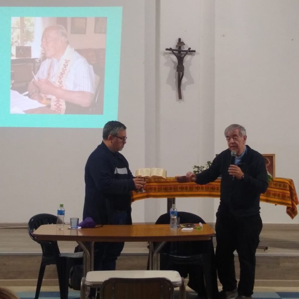 Por un lado ser reconocidos como SEDE oficial Córdoba de ISCA Argentina y por otro recibir parte del fondo editorial del Padre Franz De Vos, padre y testigo de la renovación conciliar de la catequesis en Argentina. Dicho fondo, de enorme riqueza, pasará a formar parte de nuestra Biblioteca de los catequistas. El acto fue sellado con un gesto de Comunión: hemos recibido en custodia un cáliz que perteneciera al P. Franz de Vos. Palabra y Eucaristía, envío y Evangelización son las palabras que esbozan la riqueza de este encuentro. ¡Gracias ISCA Argentina y gracias P. Alejandro Puiggari!