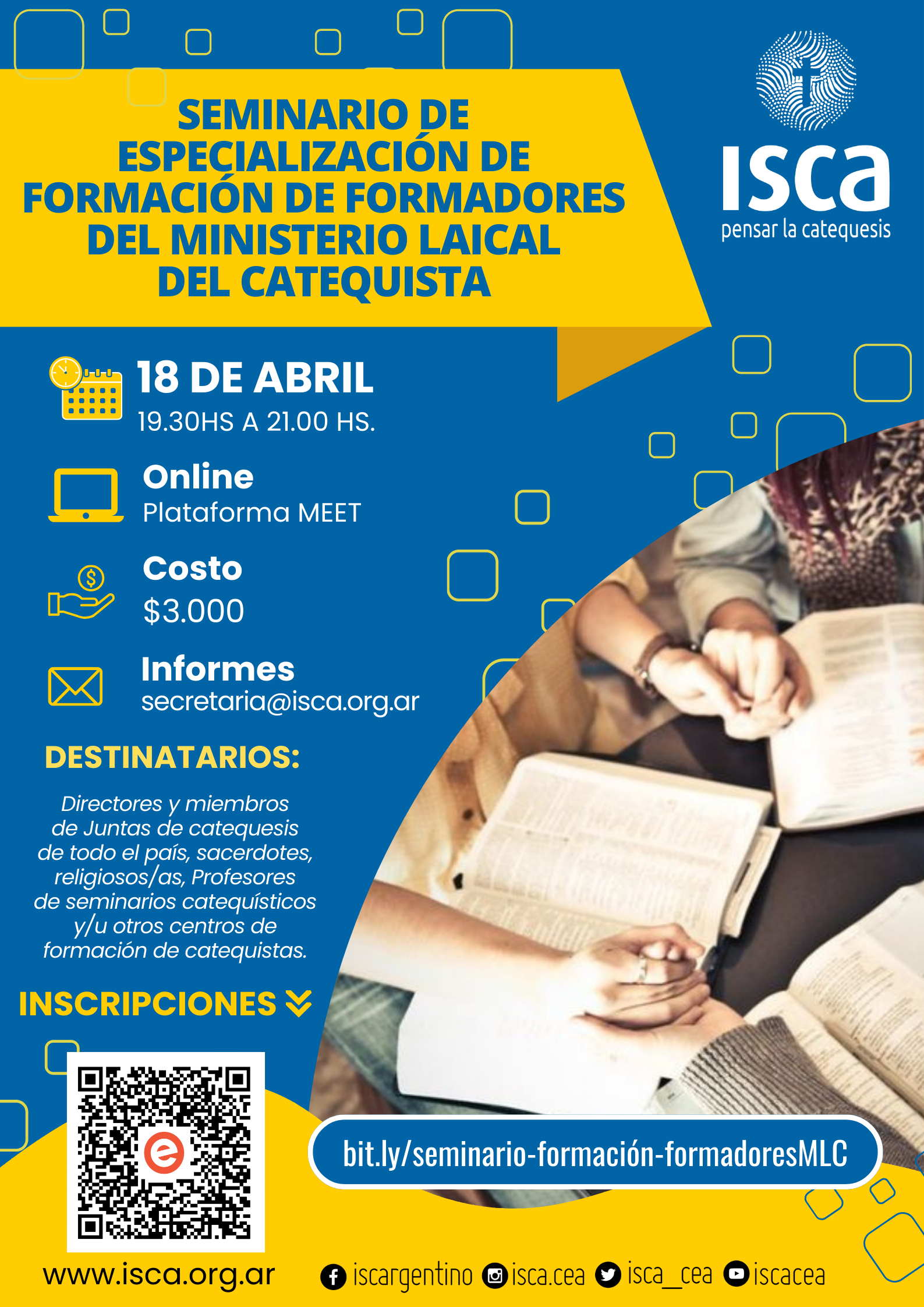 • Encuentro 1: Introducción al documento “Criterios normativos e Itinerario de formación para la institución de ministros laicos catequistas en la República Argentina”. (18 Abril de 19.30 hs. a 21.00 hs.)