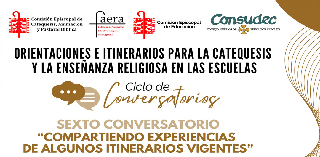 Leer másOrientaciones e itinerarios para la catequesis y la enseñanza religiosa en las escuelas. Sexto Conversatorio:“COMPARTIENDO EXPERIENCIAS DE ALGUNOS ITINERARIOS VIGENTES”Congregación de las Religiosas de Jesús María – Espacio Betesda – Orden de la Merced – Hnas. Mercedarias del Niño Jesús. Moderan: Adrián Álvarez – Presidente del Consudec, Santiago Peluso – FAERA.